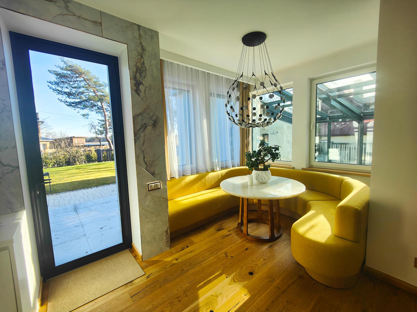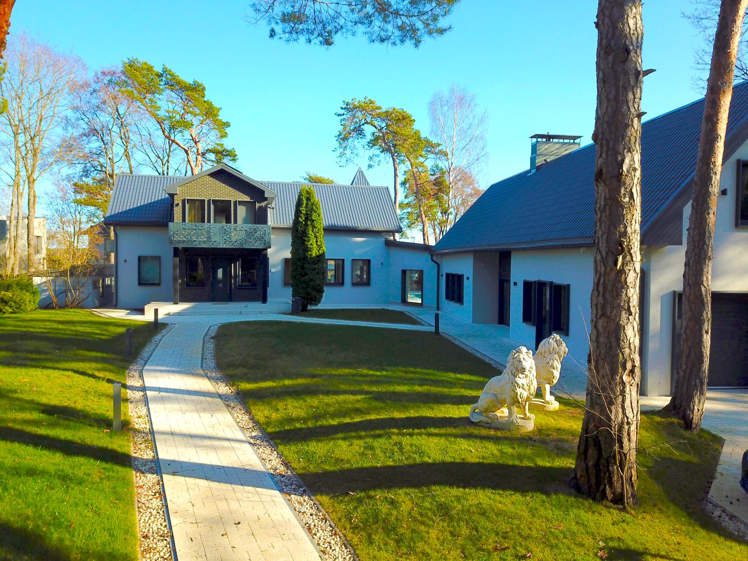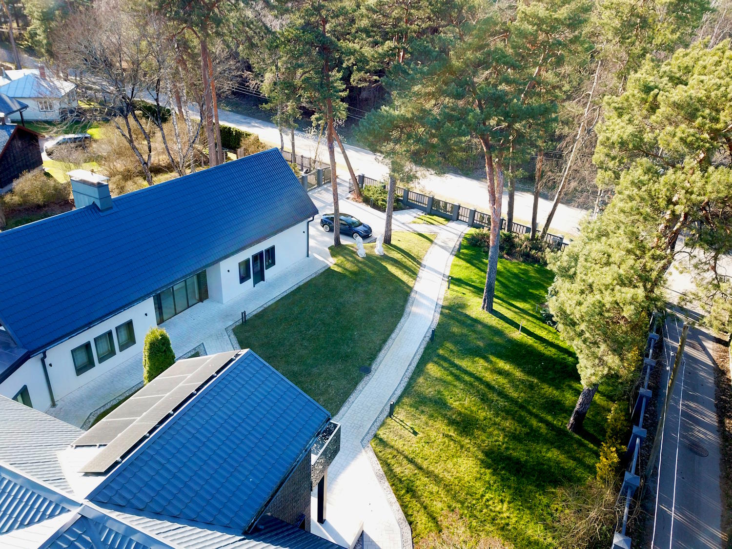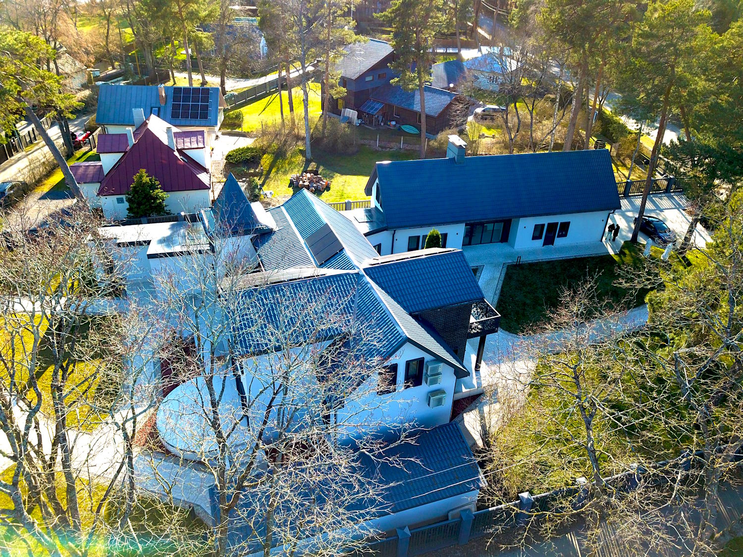Solar panels, triple-glazed windows, underfloor heating, thick multi-layer walls that gives high energy efficiency level