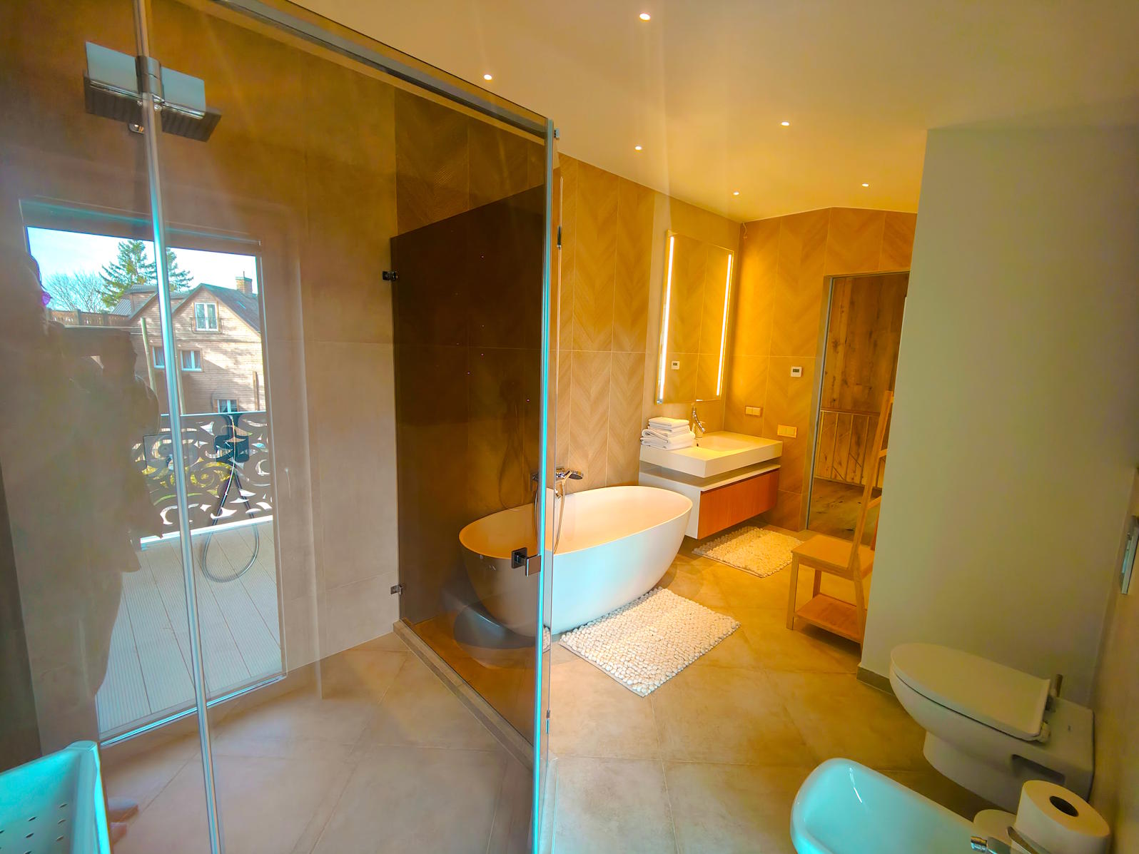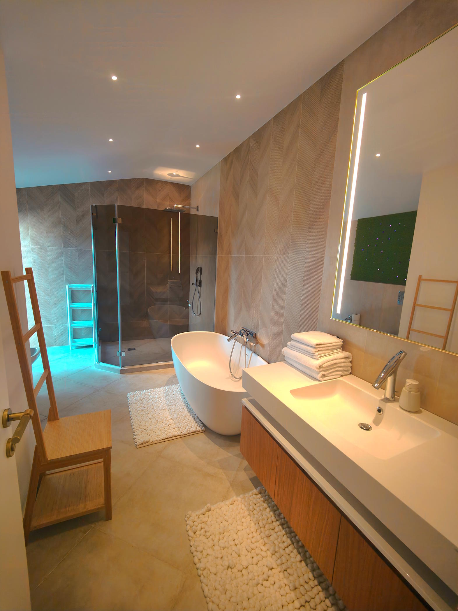 Adjustable multicolour RGB lights system ( that looks absolutely fantastic in the night and gives spa space marvellous ambience)