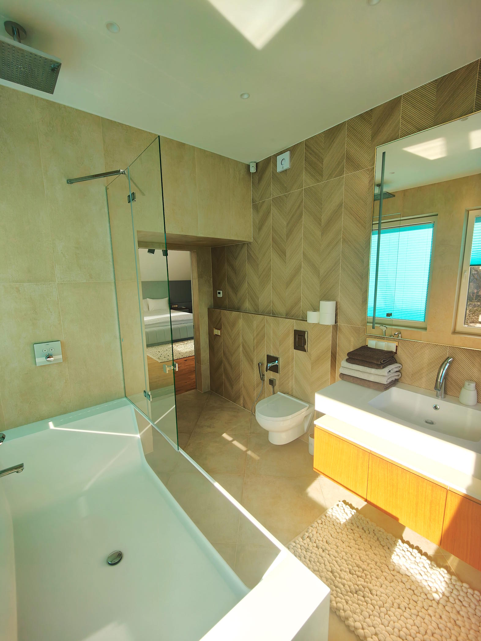 One more bathroom with both, bath and rainfall shower.